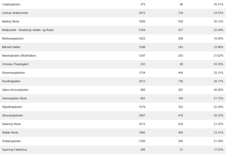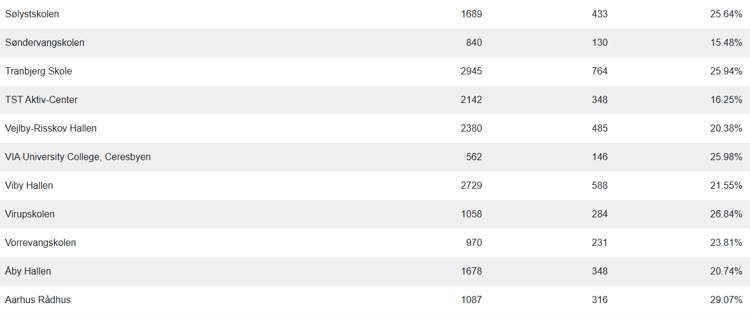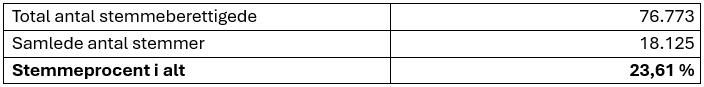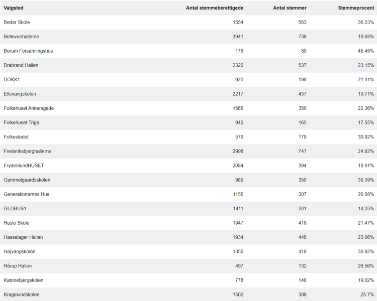 Her kan du se alle 49 valgsteders stemmeprocent.
